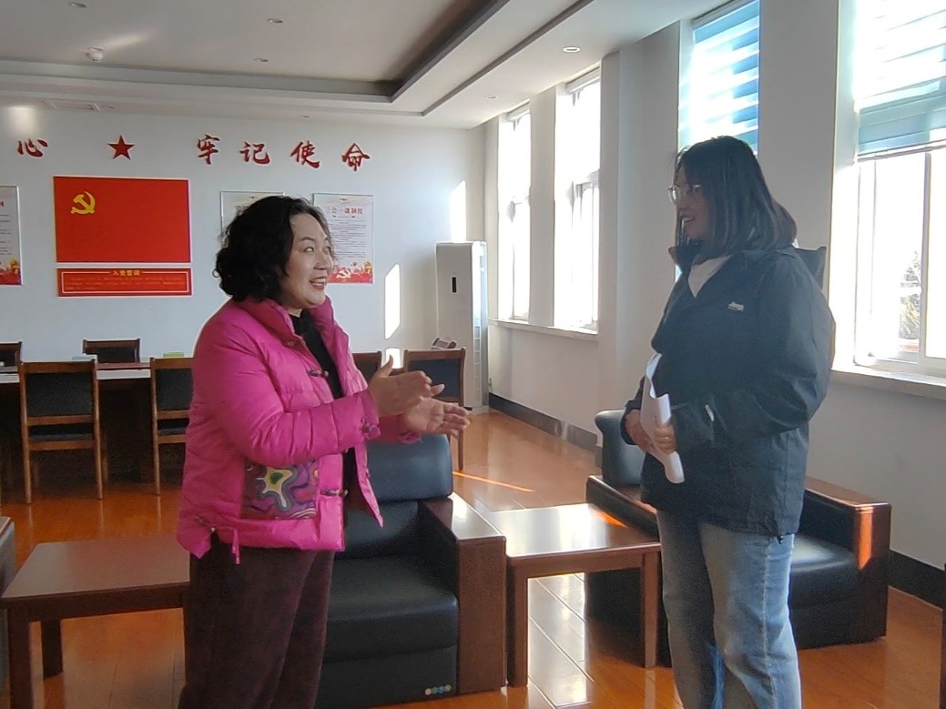 图为实践队员就茂腔的相关问题采访贤继红老师。张昕 供图