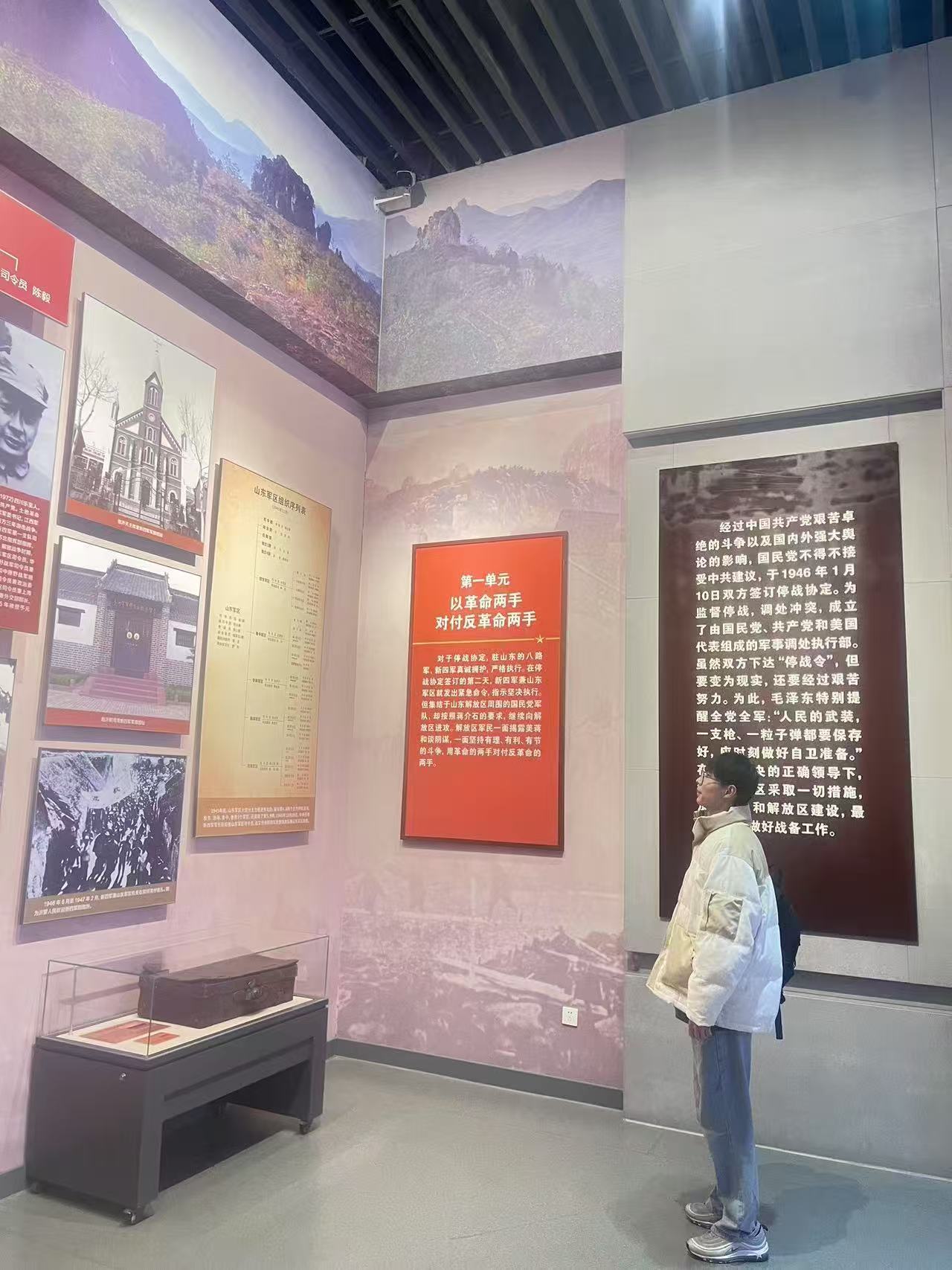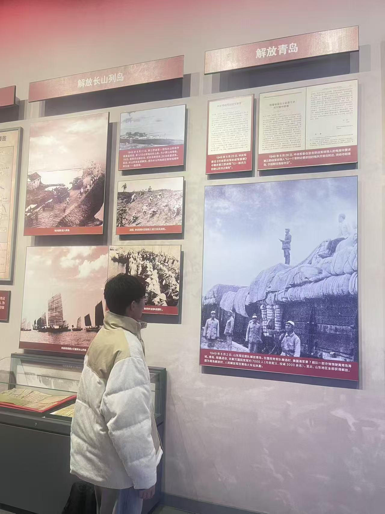 华东野战军纪念馆位于山东省临沂市,是全国重要的爱国主义教育基地。纪念馆内陈列了大量珍贵的历史文物、图片和文献资料,生动再现了华东野战军在解放战争中的光辉历程和伟大贡献。在讲解员的带领下,同学们依次参观了“华东野战军的成立”“淮海战役”“渡江战役”等主题展区,深入了解了华东野战军在艰苦卓绝的战争环境中英勇奋战、不怕牺牲的革命精神。