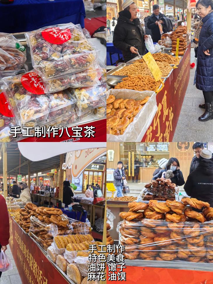 除了上述几类,市集上还有固原的马铃薯制品、中卫的硒砂瓜干、灵武的长枣等特色年货。这些各具特色的农产品,充分展示了宁夏丰富多样的农业资源和独特的地域文化。更值得一提的是,上述年货产品均为当地农户家中自产自制,绿色健康,极富地域特色。许多人慕名而来,购买心仪的特色美食,置办年货,市集上一派热闹的景象,年味儿十足。
