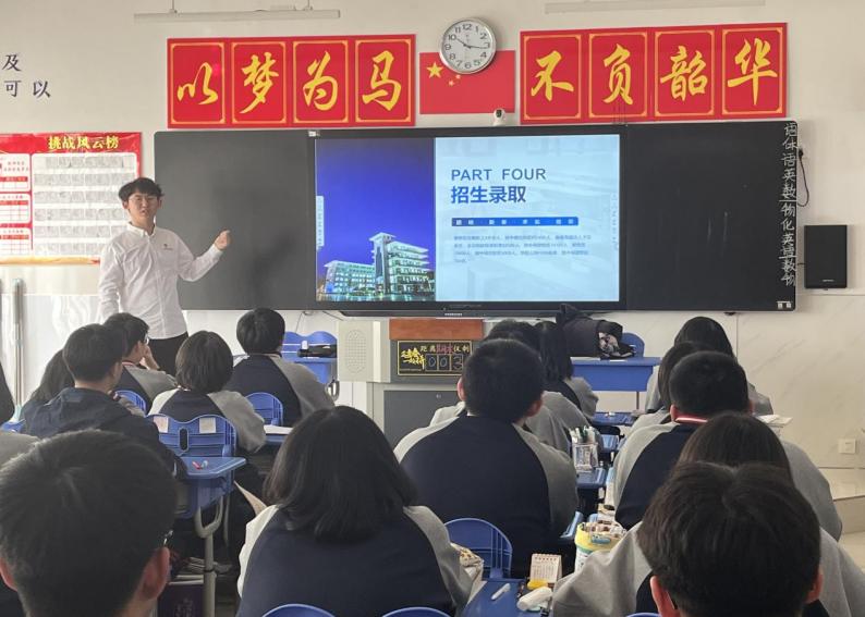 活动当天,实践团从保定市出发,于清晨7点顺利抵达定州市第一中学。抵达后,队员们迅速与学校负责人对接,熟悉场地并调试宣讲设备,确保活动的顺利开展。上午,张天博同学为学生们带来了大学生活分享和高中学习经验交流,详细宣讲了华北电力大学的办学特色、学科专业、校园文化以及招生政策,帮助学弟学妹们深入了解大学生活、专业特色及学业规划,为他们的未来发展提供了清晰的方向。