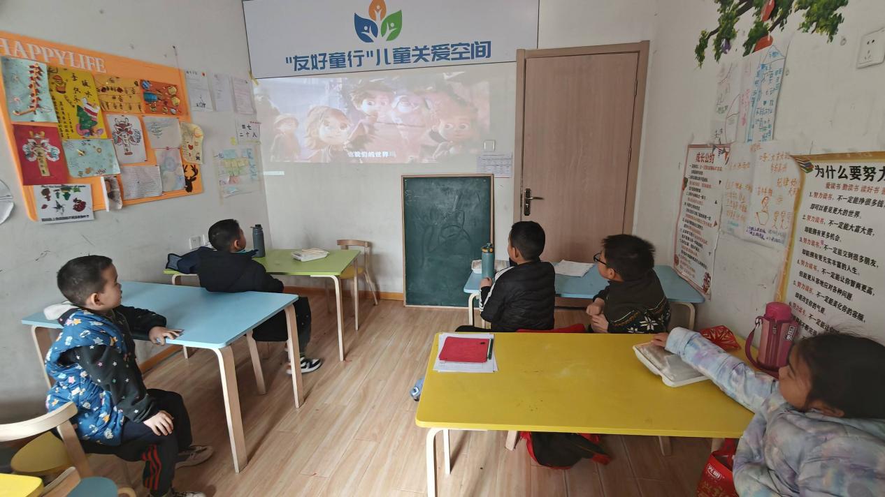 中午十一点半,小朋友们就餐过后,友童空间负责人徐雅莉老师为小朋友们播放了熊出没的电影。电影开场,小朋友们都乖乖坐好,认真观影,积极配合志愿者。影片结束,大家兴奋地围在一起,你一言我一语分享着对电影的喜爱,欢声笑语不断,现场气氛热烈至极。