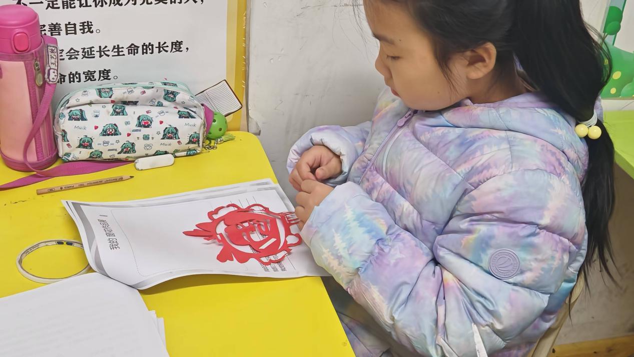 上午九点,小朋友们下课休息。志愿者们和小朋友一起做游戏,山大唐社的黄平康同学和小朋友们下五子棋和围棋,李子晗同学为小朋友们开展了剪窗花的活动,小朋友的眼睛里闪烁着好奇与兴奋的光芒,在小朋友们的巧手下,一幅幅精美的图案应运而生,为课堂增添了浓厚的节日氛围。