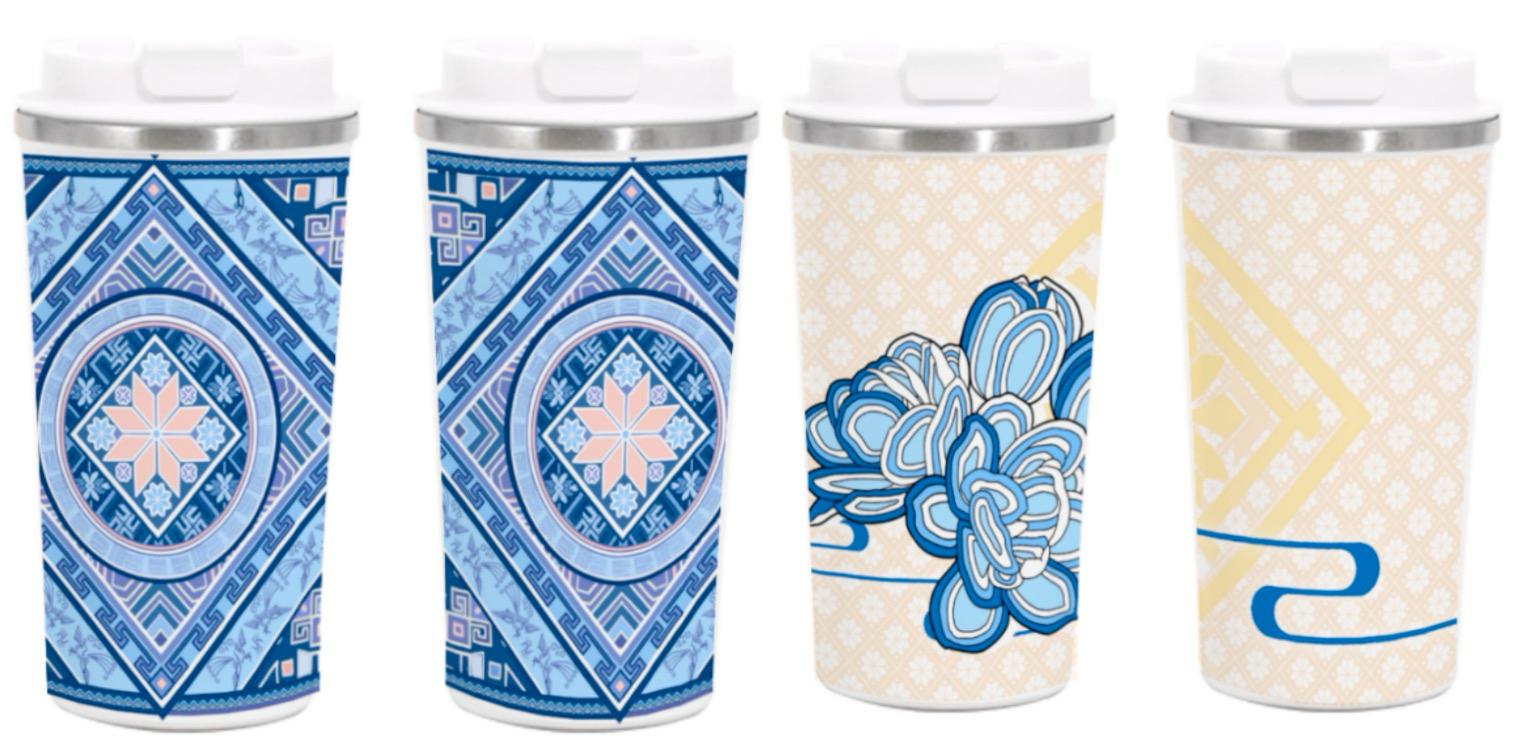 实践团设计的两款壮锦奶茶包装,成为传统与现代碰撞的典范。一款以壮族蓝靛染工艺为主色调,纹样上以八角花纹饰为主体,意为崇拜太阳神之花,寓意这全方位的幸运与顺利。八角花纹四周环绕着万字纹和菊花纹,也并称万吉纹,象征吉祥如意。外圈由内到外分别为回纹、凤纹以及双鱼纹,表达了壮族人民对子孙繁盛、年年有余、五谷丰登的幸福生活的向往;另一款融合茉莉花与蝴蝶纹,象征着生命的活力与对幸福、自由的追求。撞色设计凸显年轻活力。“我们想证明,非遗也能很‘潮’。”团队成员展示设计图时充满自信。