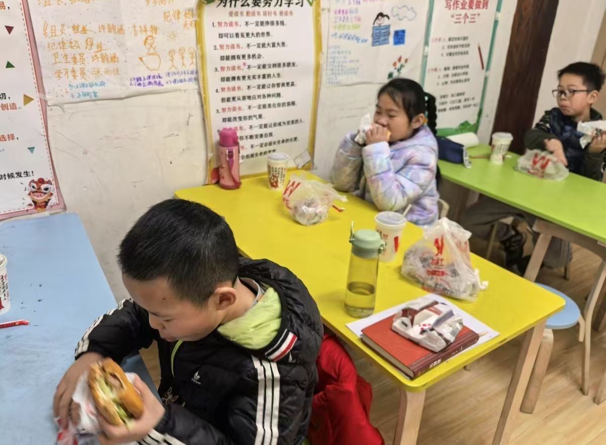 中午,孩子们围坐在一起,享用着美味的汉堡。汉堡的香气弥漫在空气中,孩子们的脸上洋溢着幸福的笑容。他们一边品尝美食,一边分享着彼此的趣事,欢声笑语不断。这顿简单的午餐,满足了孩子们的味蕾,让教室里充满了温馨与欢乐。