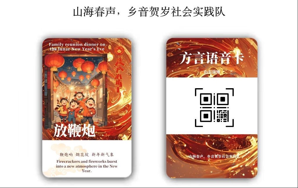 实践队也精心制作了方言语音小卡,卡面设计融合两地地域文化特色,辅以多种语言文字介绍。队员们将前期收集的方言新春祝福音频转换为二维码植入卡面,扫码即可收听祝福音频,以新颖形式吸引年轻人关注方言文化。此外,实践队队员还通过公众号定期发布方言文化知识推文,内容涵盖方言词汇、语法、发音等,并设置投稿功能与趣味互动环节,如方言问答、猜方言挑战等,激发大众了解方言文化的主动性。推文采用多语言呈现,扩大受众范围,促进文化交流融合。