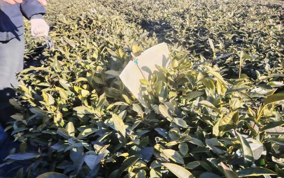 离开大棚区域,来到露天茶园与大棚内的茶树相比,露天茶树完全依靠自然环境生长,虽面临着低温、干燥等挑战,但也在长期的适应中形成了独特的抗逆性。