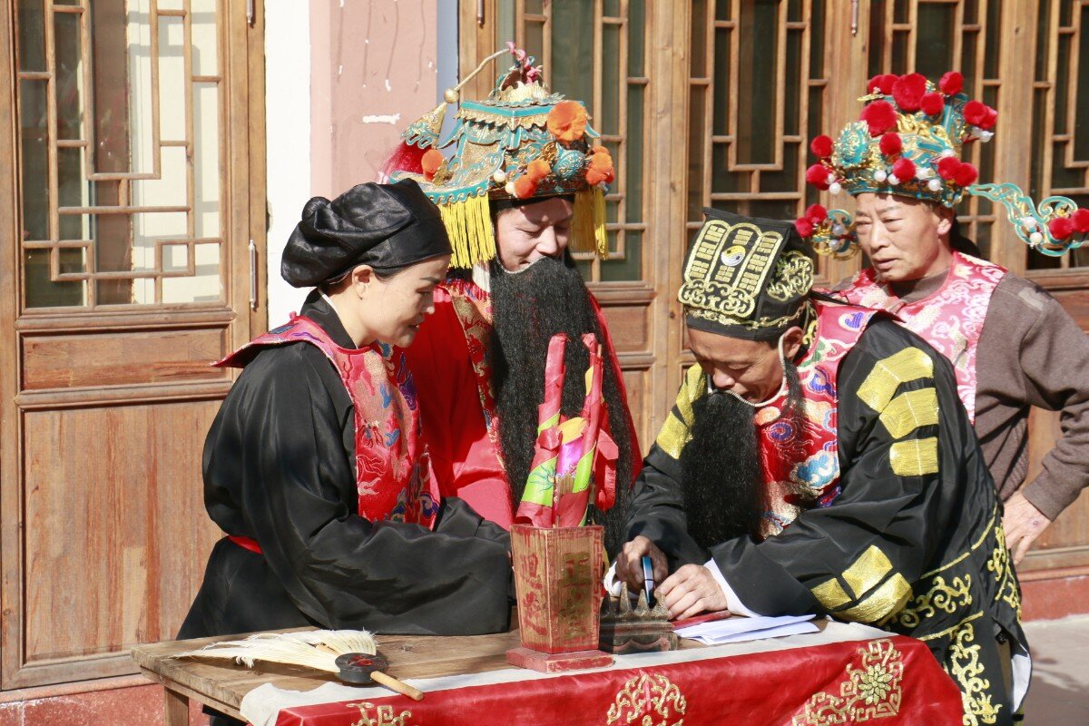 在传承人的悉心指导下,社会实践队队员们也亲身体验了一把大腔戏的表演。他们穿上精致的戏服,站在舞台上,随着鼓点响起,齐声唱道:“回转京城,烈马扬鞭步回程。”那一刻,表演者仿佛穿越了时空,与大腔戏中的角色融为一体。