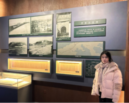 实践团成员徐嘉仪同学走进大连市博物馆,探寻家乡文化。近代大连展厅的历史照片和文物,让她深刻体会到家乡人民在屈辱中抗争、在苦难中奋起的民族精神。城市演变展厅详细展示了大连从沿海小渔村到被日俄侵占改变城市格局,再变为现代化都市的历程,令她倍感自豪。此外,她还在二楼活动厅学习大连非遗螺钿手工制作,并亲手制出螺钿胸针。通过此次实践,她更加了解家乡历史,这里的每一寸土地都镌刻着历史的印记。徐嘉仪认为,作为新时代青年,每个人都有责任了解家乡历史,传承红色基因,讲好家乡故事。
