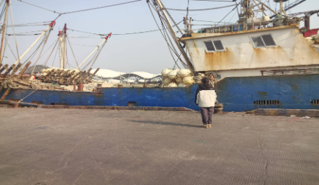 实践团成员姚钰蓉同学则前往吕四大洋港码头进行社会实践。俗话说得好:“靠山吃山,靠海吃海。”吕四港镇具有先天的地理位置优势,吕四港镇历代人靠着打鱼谋生。随着新年将至,码头呈现出一片热闹的景象,渔民们忙着卸船,传输带上运送着新鲜的海产品,这是新年前最后一批上岸的渔货物,渔民们准备开始收网迎新春。姚钰蓉了解到,吕四的海产品不仅聚焦于国内市场,还面向海外市场,这也成为了吕四这座小镇的显著特征。同时因为渔民们长期在出海,为了解闷,创造出了享誉中国的渔歌号子。姚钰蓉说,吕四港镇的渔场文化成就了吕四的经济发展,知名度,对外影响力等,它需要我们一代一代的后代们传播好这种文化。