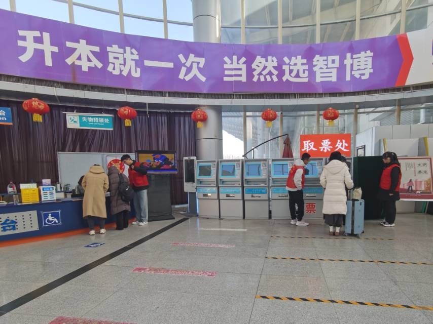 其他成员则在自助取票机旁,帮助那些不太熟悉操作的乘客顺利取票,大大提高了取票效率,减少了乘客排队等候的时间,为乘客提供了便利。在候车大厅和各个通道口,也有实践团成员们忙碌的身影。他们化身“活地图”,为乘客们指引方向,无论是前往哪个候车区域,还是寻找卫生间、商店,只要乘客有需求,他们都能准确地给予引导。遇到携带大件行李的乘客,他们二话不说,主动上前帮忙搬运行李,一路护送乘客到达目的地。