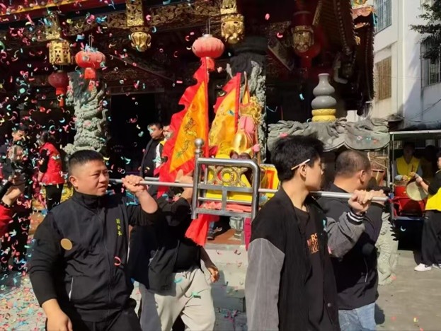 实践队员随后前往漳州市芗城区浦南镇,观摩了当地传统的游神活动。游神过程主要分为三个环节:请神、游神和送神。活动开始时,村民们准备好神像和祭祀用品,由一位年长的尊者向神明请示是否愿意出庙巡游。待神明“点头”示意后,游神队伍便沿着预设的路线在村庄及周边地区巡游。巡游结束后,神像被恭敬地送回庙宇,村民们进行祭祀和祈福,以感谢神明的庇佑。在整个活动中,实践队员见证了村民们齐心协力完成各项事务的场景,感受到了游神活动对村社情感纽带和社会联系的强化作用,同时也深刻体会到了闽南地区独特的风俗文化。