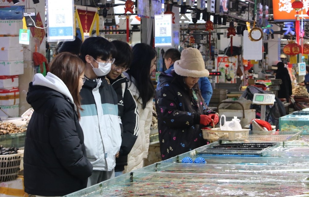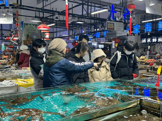 在全球粮食安全形势日趋复杂、人们饮食需求愈发多元的当下,人口增长、气候变化、资源约束等多重挑战交织,使得传统食物供应模式面临巨大压力。在这样的大背景下,习近平总书记关于树立大食物观,向海洋要食物,建设海上牧场、“蓝色粮仓”的重要指示,为海洋渔业的发展指明了方向。“大食物观”成为我国保障食物供给的重要指引。曲阜师范大学“变废为宝”社会实践队积极响应号召,于2025年2月10日再次深入日照石臼海鲜市场,探寻海洋渔业发展的创新路径。
