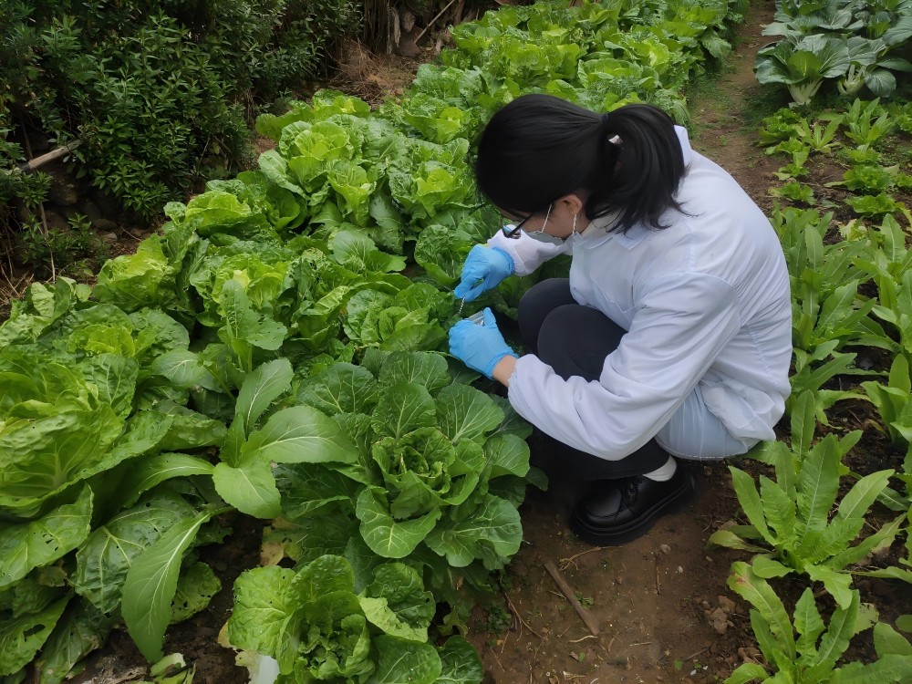 团队负责人首先带领团队成员在坭塘村熟悉周围环境,确保实践过程的安全并和当地的村民进行交流,说明来意征得同意后采集村民种植的农作物和作物土壤,并在过程中询问村民们使用的农药和化肥的种类和农药化肥的使用量。通过走访调研小组成员了解到村民大多种植的是蔬菜中的白菜,菠菜,花菜等市面上常见的青菜种类,常使用阿维菌素,甲维盐,氯虫苯甲酰胺,高效氯氰菊酯等农药杀虫剂,常使用的化肥有钾肥、尿素、复合肥和农家肥等化肥。调研实践过程中,小组成员利用微信公众号、快手、抖音等平台,定期更新实践调研动态,以短视频的形式展示创新调研方法的应用过程和成果,吸引众多老师学生的关注。