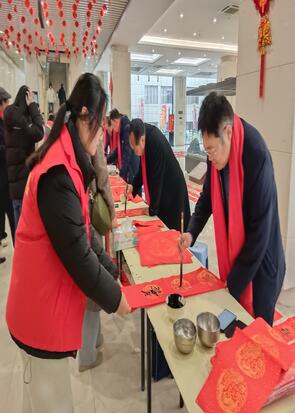 团队成员不仅让市民领取了墨香四溢的春联和“福”字,还在现场讲解了春节起源、发展以及春联和“福”字的书写技巧,使市民在领取春联的同时,也能了解到传统文化的的魅力。