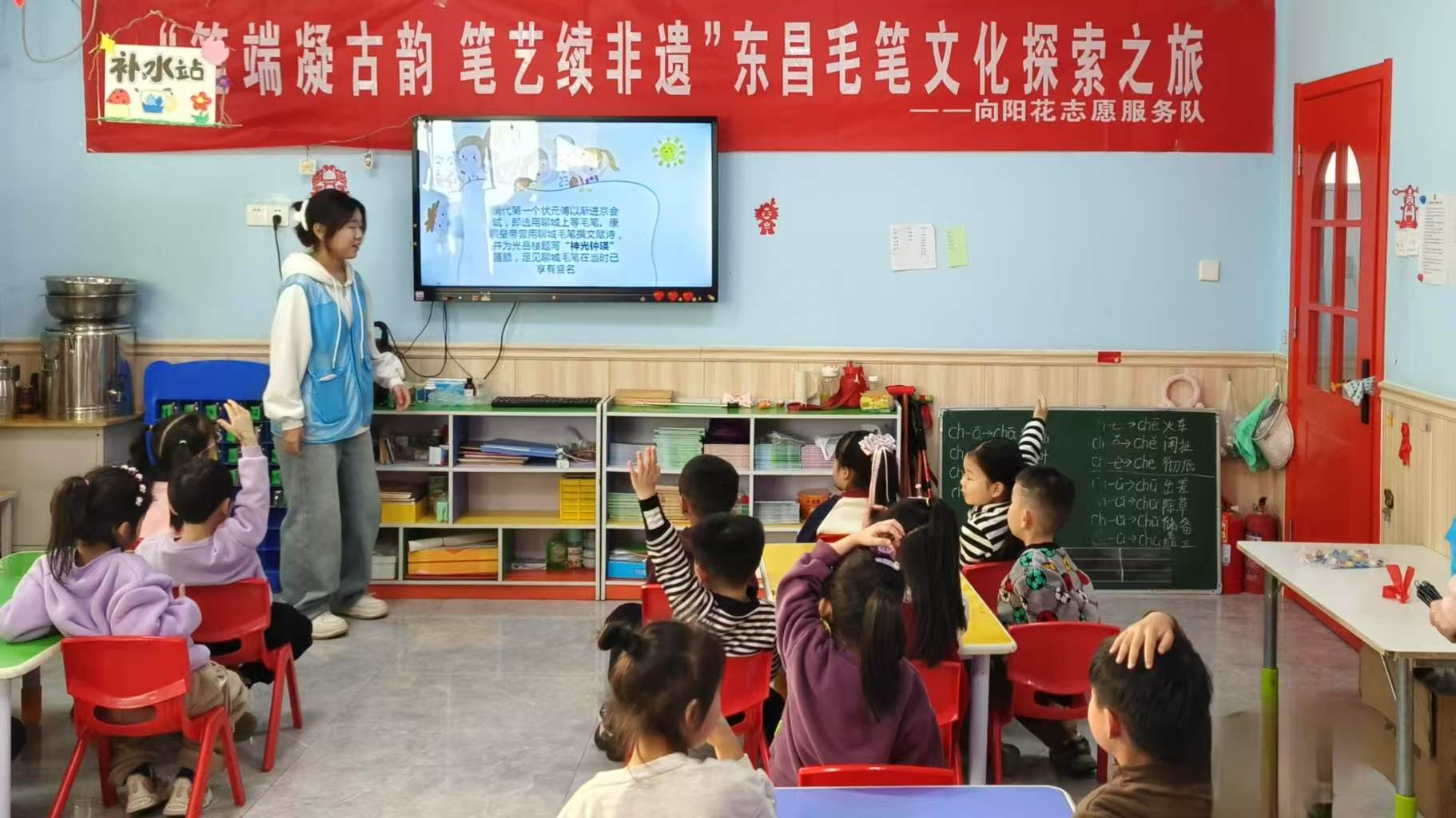 东昌毛笔,历史悠久,制作工艺极为严谨,素有“万千毛中选一毫”之说。其含墨量多而不滴,行笔流畅而不滞。2013年5月8日,山东省人民政府印发《山东省人民政府关于公布第三批省级非物质文化遗产名录和省级非物质文化遗产扩展项目名录的通知(鲁政字〔2013〕90号)》,东昌毛笔制作技艺被列入山东省第三批省级非物质文化遗产名录。为积极响应国家保护非物质文化遗产的号召,传承和弘扬中华优秀传统文化,促进群众对传承毛笔文化的重视与参与,1月10日到1月11日,聊城大学化学化工学院向阳花志愿服务队于聊城市东昌府区东昌手工毛笔非遗体验店、铁塔商城、翰林苑幼儿园等地展开了“笔端凝古韵,笔艺续非遗”东昌毛笔文化志愿服务活动。