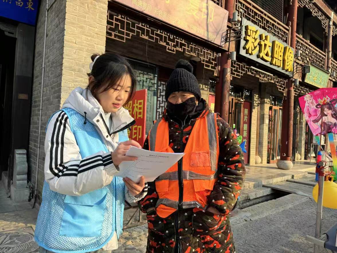 图为志愿者街头采访调查群众对东昌毛笔的了解程度 张树琦供图