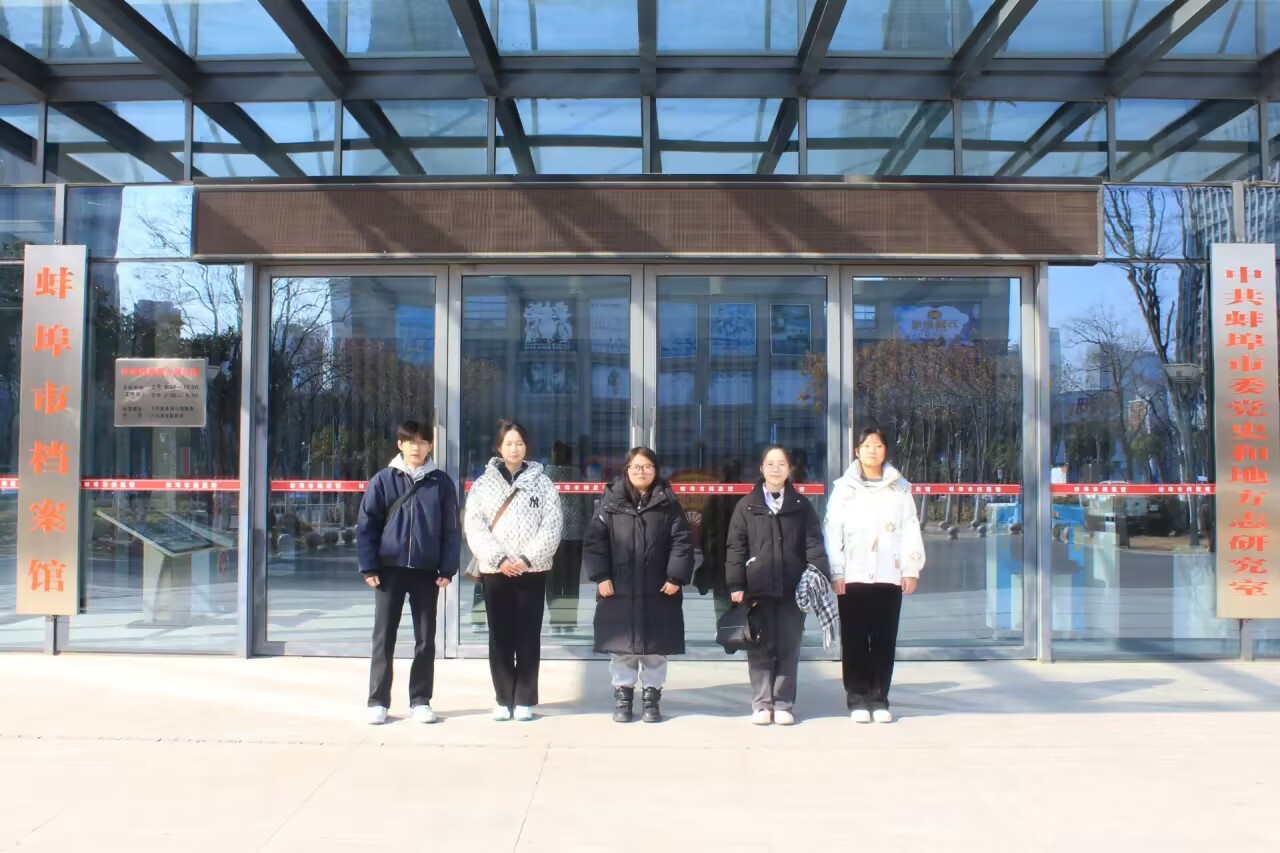 (图为团队成员在蚌埠市档案馆的门前合照)