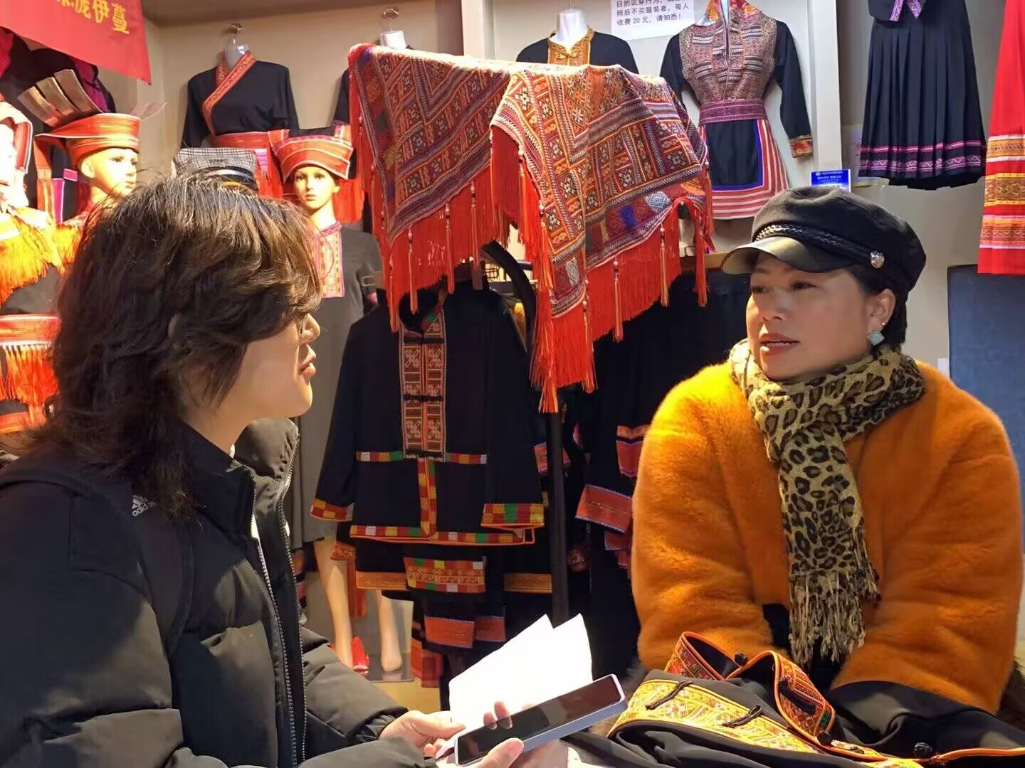 图为调研团队采访非遗传承人庞伊蔓。黄梅熙 供图