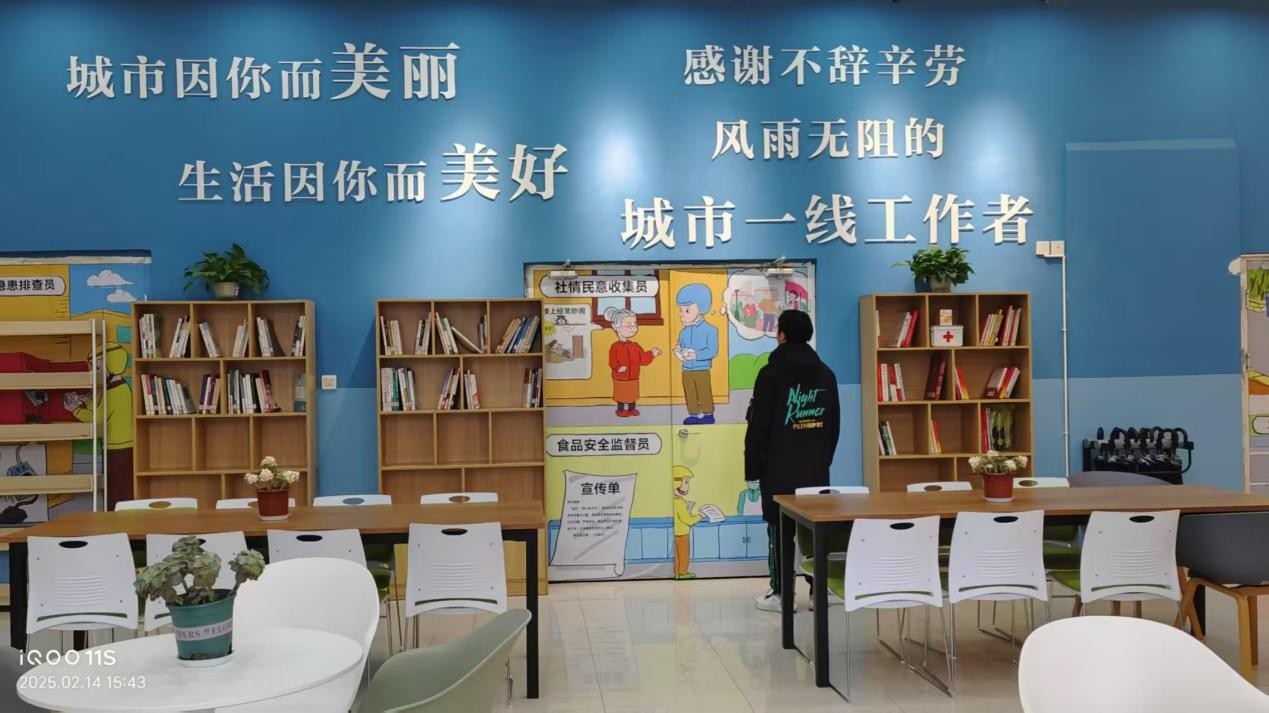 2月14日,实践队员罗圣杰与四川省内江市东兴区委社会工作部副部长、组织部与社工部工作人员开展座谈。东兴区持续打造“三链共织”的新就业群体党建模式,把新就业群体紧紧团结在党的周围。一是建强“治理链”。常态化开展“组织找党员、党员找组织、党员找党员”活动。二是织密“关爱链”。以“1+3+N”工作思路推进阵地建设,打造“甜城港湾”,重点探索“甜小新”品牌建设,增强新就业群体的归属感、安全感、幸福感。三是激活“治理链”。设立党员示范岗、党员责任区,引导新就业群体党员职工到社区报到,发挥党员先锋模范作用,赋能基层治理。此外,实践队员还在工作人员带领下实地走访了万达“甜城港湾”和部分“爱心商户”,实地感受静谧舒适的休息环境,体验完善的服务设施。