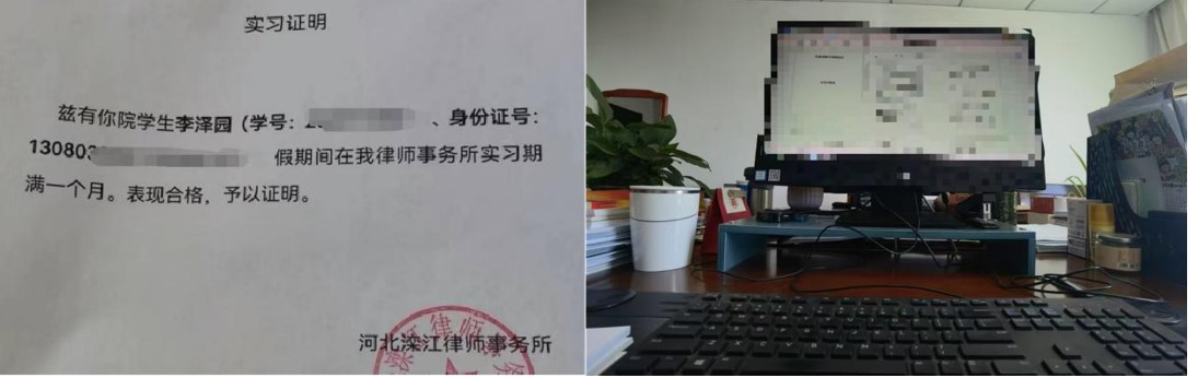 在河北滦江律师事务所实习的李泽园同学,全过程参与了庭审案件从立案到结案的全流程工作。他从原被告双方的角度理解司法实践,深入了解律师所需掌握的业务细节。实习期间,他倾听基层百姓的声音,为解决法律服务“最后一公里”问题提供了新的思路。李泽园表示:“这次实习让我进一步将所学理论与实践相结合,牢固树立了司法为民的价值观。实习单位的肯定和评价也让我更加坚定了未来的职业方向。”