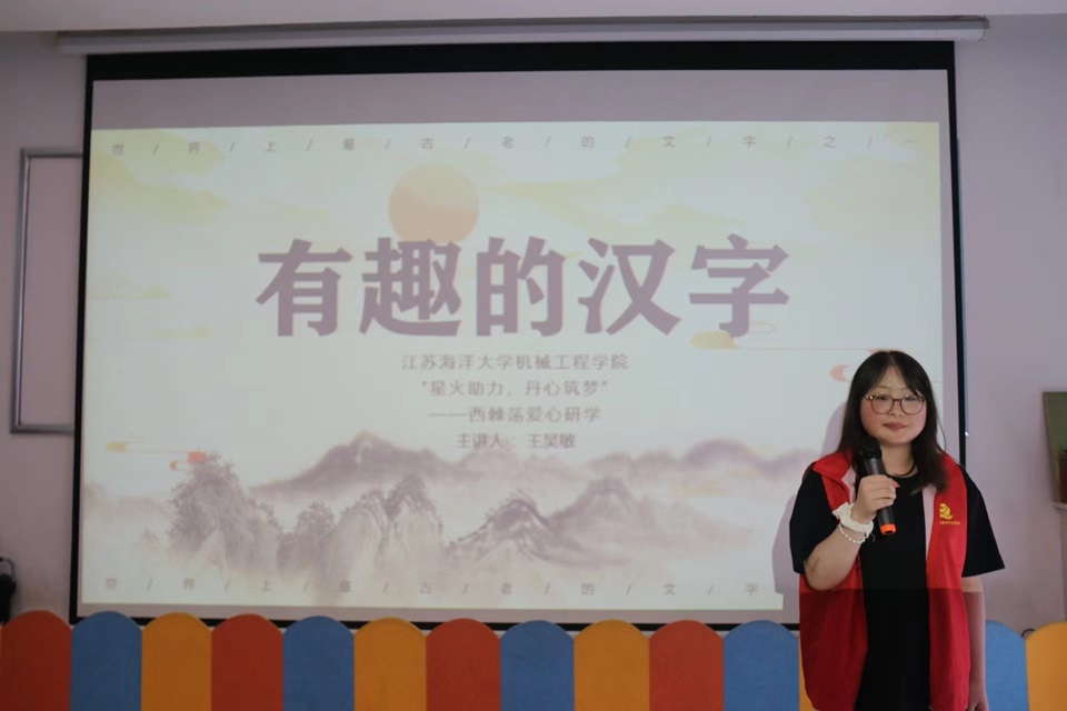 7月11日,江苏海洋大学机械工程学院“星火助力,丹心筑梦”——西棘荡爱心研学暑期社会实践团队在西棘荡村开展“有趣的汉字”教育课程,主讲人由教学组组长王昊敏担任。