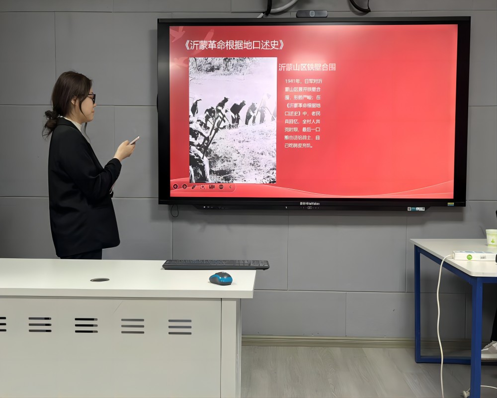 读书会上,宣讲团成员带领大家深入学习了《沂蒙红嫂》和《沂蒙精神研究》等书籍,结合历史背景与鲜活案例,系统阐释了"党群同心、军民情深、水乳交融、生死与共"的沂蒙精神内涵。通过影视片段展播、革命故事情景再现等沉浸式环节,师生们深刻感悟到沂蒙人民用乳汁救伤员、用小车推胜利的壮阔历史,真切体会到"最后一口粮当军粮,最后一块布做军装"的奉献情怀。共同感悟沂蒙人民在革命战争中的无私奉献与坚韧品质,激发了在场师生对红色文化的浓厚兴趣和学习热情。
