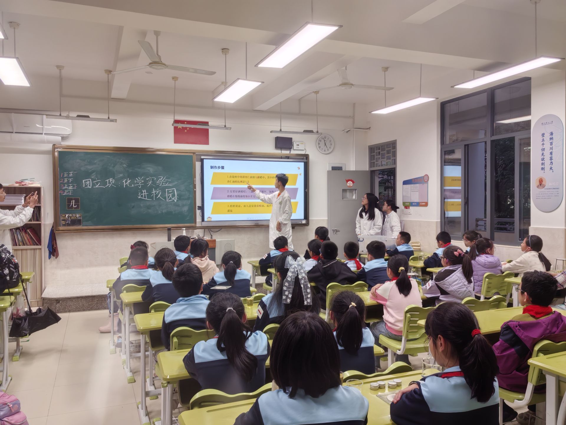 党的二十大报告提出,必须坚持科技是第一生产力、人才是第一资源、创新是第一动力,深入实施科教兴国战略、人才强国战略、创新驱动发展战略。在国家推进深入学习贯彻“新质生产力”政策的时代背景下,各大高校正积极投身于建设中国式现代化。2024年11月21日下午,福州大学2024级化学工程与工艺二班团支部、福州大学化工学院实践部的各位同学们走进福州金山小学,教授了一节特殊的化学实验课,实验课内容为“制作清凉油”。本次活动作为“青春挺膺现代化,薪火相承续华章”系列活动之一,不仅为小学生们带来了贴近生活的新奇有趣的科学实验知识,也让化工专业的大一新生在实践中找到了自己的时代定位,在社会实践中学习到传承与发展的核心理念,为将来更好的投身中国式现代化奠定了基础。