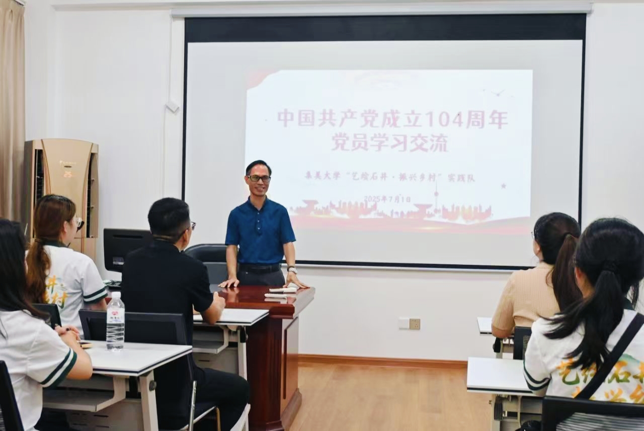 2025年7月1日,为庆祝中国共产党成立104周年,助力乡村文化振兴,集美大学美术与设计学院“艺绘石井·振兴乡村”实践队以"艺心向党,赋能乡村"为主题开展党日活动。从理论学习夯实信仰之基,到非遗研学活化文化基因,实践队员们将专业所长融入乡村振兴的时代征程,为乡土发展注入艺术动能。