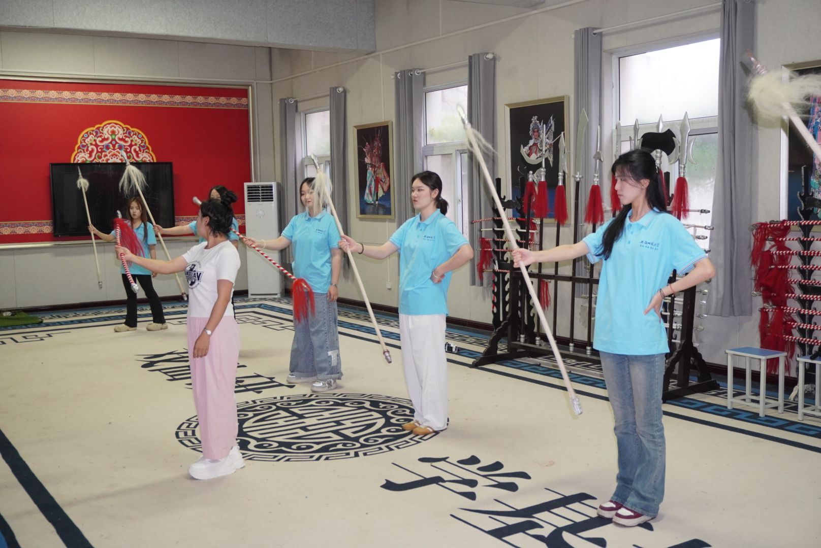 随后,豫剧院老师带领调研团队成员展开了“妆”“衣”“伴奏乐器”“把子功”“唱念”五项专业课程的学习互动,团队成员近距离观赏了精美华丽的妆造、戏服、头饰等,深刻体会到“台上一分钟,台下十年功。”的艺术表演文化真谛,对戏曲工作者的匠心与付出产生深刻感悟并对此由衷致敬!