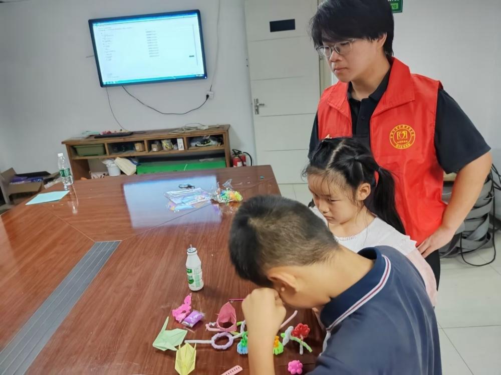 讲解结束后,进入趣味十足的扭扭棒创作环节。志愿者为孩子们分发了五颜六色的扭扭棒。志愿者化身“手工老师“,教孩子们创作花朵和柿子。孩子们迫不及待地动手尝试,有的孩子发挥奇思妙想,创作出眼镜,每一位孩子都创造出属于自己的作品。过程中,孩子们相互交流、互帮互助,现场充满欢声笑语。