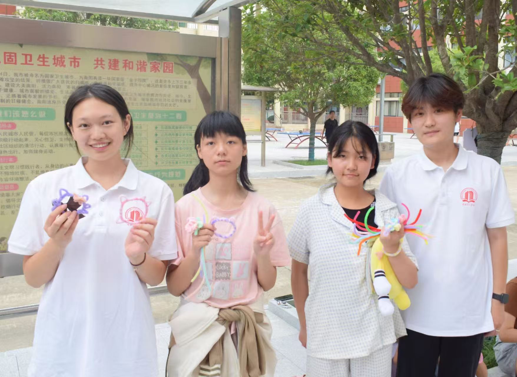 图为志愿者与学生们展示手工创作成果。 李宏宇 供图