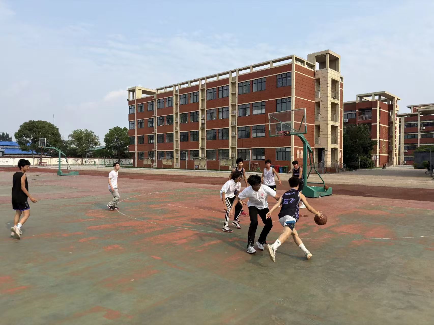 图为志愿者与学生们在篮球场上挥洒汗水。 王心语 供图