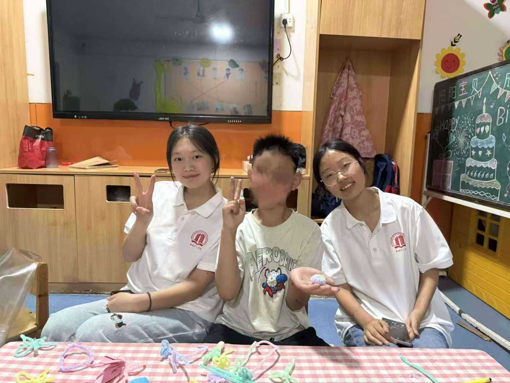 图为孩子与志愿者们做手工时传递幸福与快乐。 柴灏明 供图