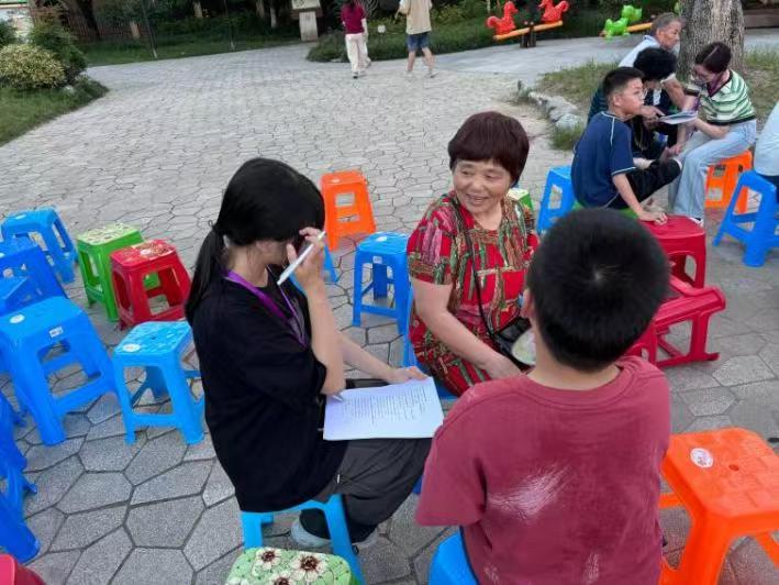 实践团队在东二社区“春风里”服务中心、党群服务中心以及大关科普公园展开了调研。由于被调研群体多数为老年人,存在视力减弱、听力下降、理解速度较慢等现实挑战,团队成员以极大的耐心、细致的态度和温暖的服务,赢得了受访老年人们的一致好评。调研过程中,温馨的场景不断上演。面对看不清问卷的老人,队员们逐字逐句清晰朗读,确保信息准确传达;遇到听力不佳的老人,队员们俯身靠近,用温和的语调不厌其烦地重复;对于理解问卷内容有困难的老人,队员们更是化身“翻译官”,用通俗易懂的语言详细解释,或以询问代替老年人直接填写。一位队员感慨道:“虽然调研过程不轻松,但想到能够真正理解爷爷奶奶对医疗保障的态度,心里成就感满满。”