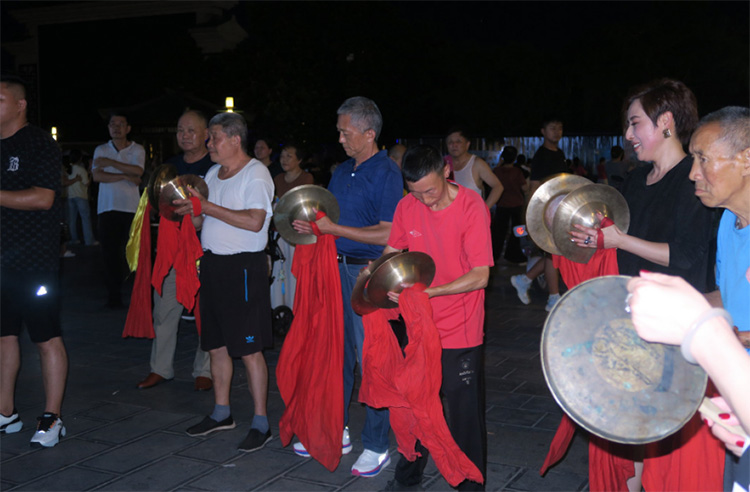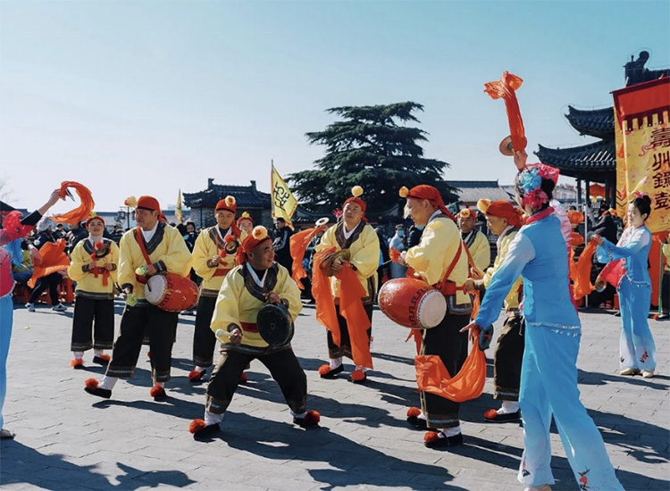 (寿州街头,寻常巷陌间居民即兴演奏锣鼓,展现其深厚群众基础)