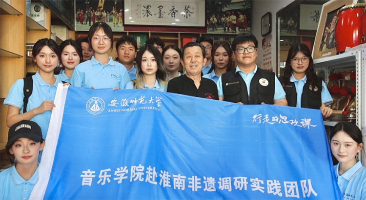 安徽师范大学音乐学院赴淮南两县非遗调研团成员循着激昂的锣鼓声,走近了安徽省省级非物质文化遗产——寿州锣鼓,对话省级传承人罗西林老师,触摸这项古老艺术在当代的蓬勃脉动。