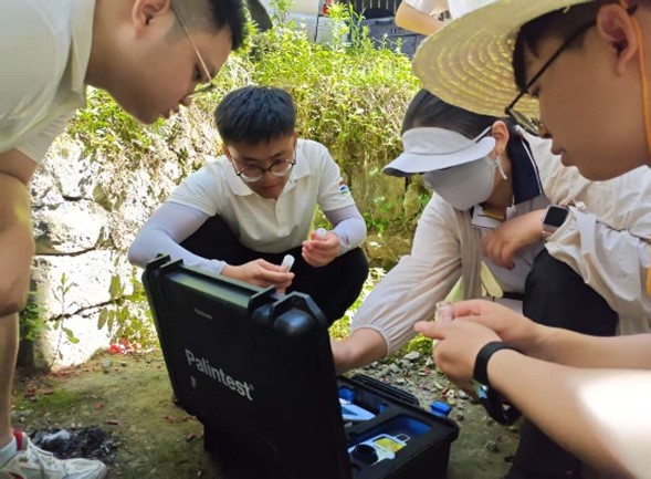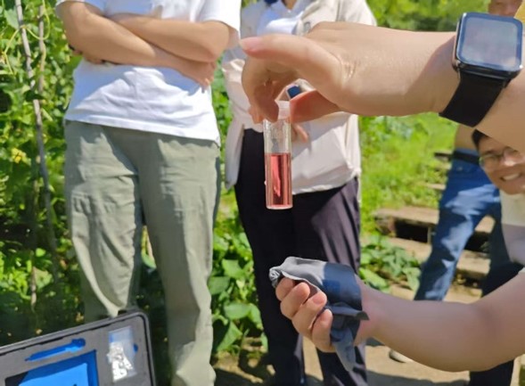 在调研过程中,团队运用专业知识和技术,对村内具有悠久历史的两处百年古井进行了实地考察与水质快速检测。调研组成员现场采集水样,并利用便携设备对关键指标(如pH值、浊度等)进行了初步测定。检测结果显示,所测指标基本符合相关要求。现场观察发现,井水清澈见底,其中可见小鱼小虾栖息,水体生态状况良好。这不仅是基础性的水文数据收集,更是当地良好水生态环境现状的体现