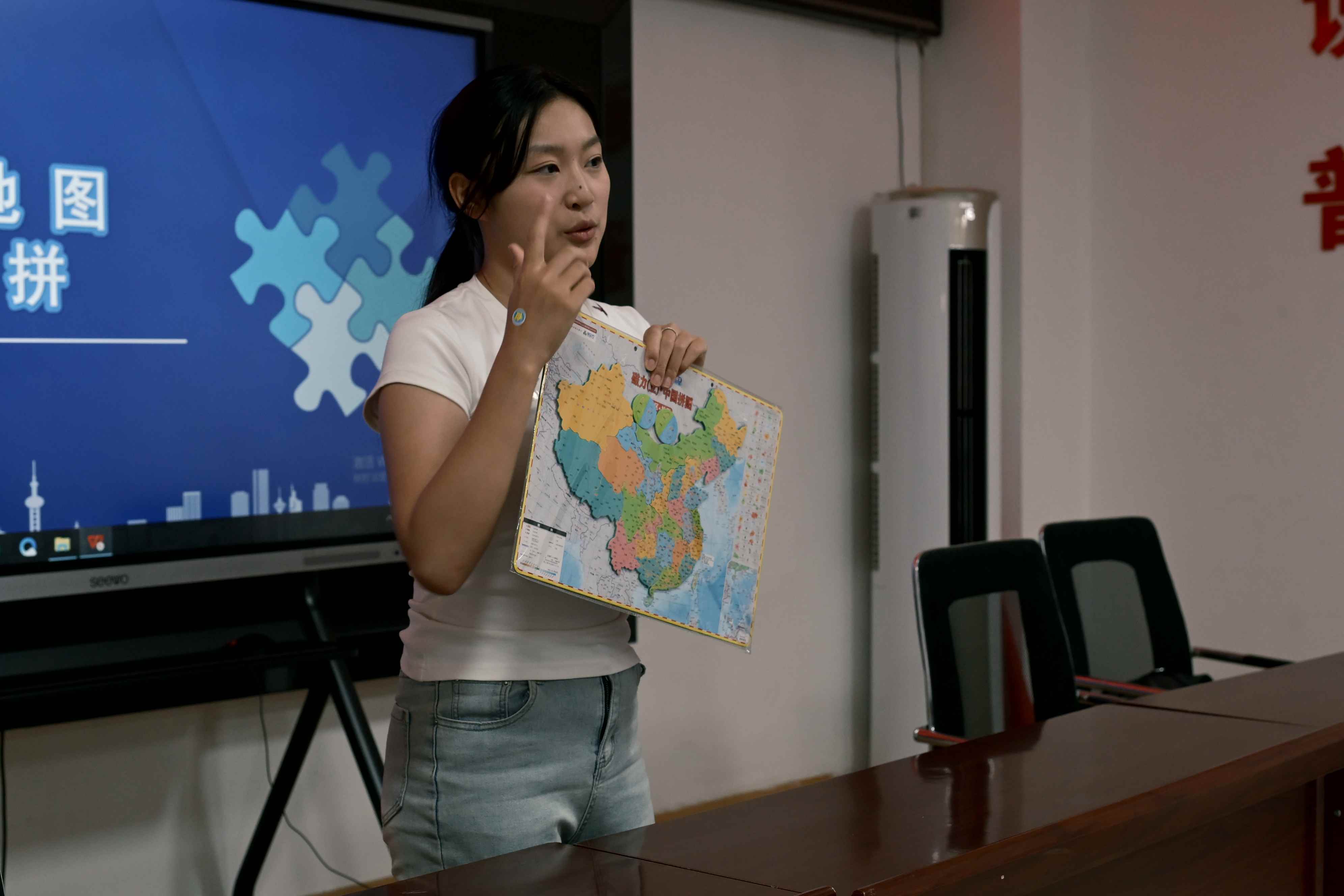 在“薪火传九州,同拼中国梦”的课程中,孩子们从主讲人鲁佳文和陈嘉苗同学通俗易懂的讲解中学习到了中国地理知识,实践团组织中国地图拼图比赛,激发了孩子们的胜负欲,让孩子们沉浸式探索祖国大好河山。同时,孩子们在实践团成员的带领下,亲自绘制中国地图,这不仅增加了他们对中国地理的认识,也培养了他们的动手能力和团队合作精神。