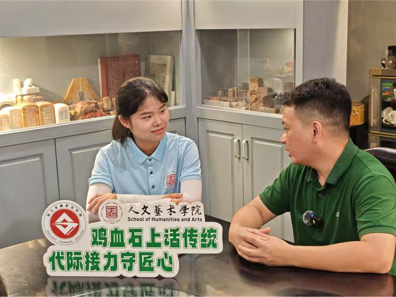 2025 年 7 月 7 日,浙江金融职业学院人文艺术学院赴杭州市临安区暑期社会实践团走进昌化鸡血石博物馆,在沉浸式参观中探寻鸡血石雕的千年文脉,并与国家级非遗传承人钱高潮、省级传承人钱友杰及资深匠人潘汉斌展开深度访谈,解码传统技艺的传承密码。