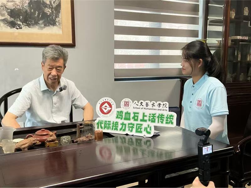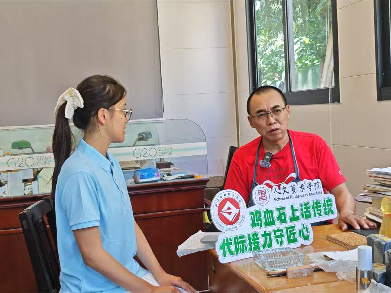 访谈中,三方就高校助力传承达成共识。钱高潮提议 "把作品送进高校展出",钱友杰则计划开展大学生创新设计大赛,潘汉斌希望高校开设基础课程培养兴趣。实践团成员吴莹莹表示:"将通过校园展览、课程合作等方式,让更多同学感受鸡血石雕的魅力。"