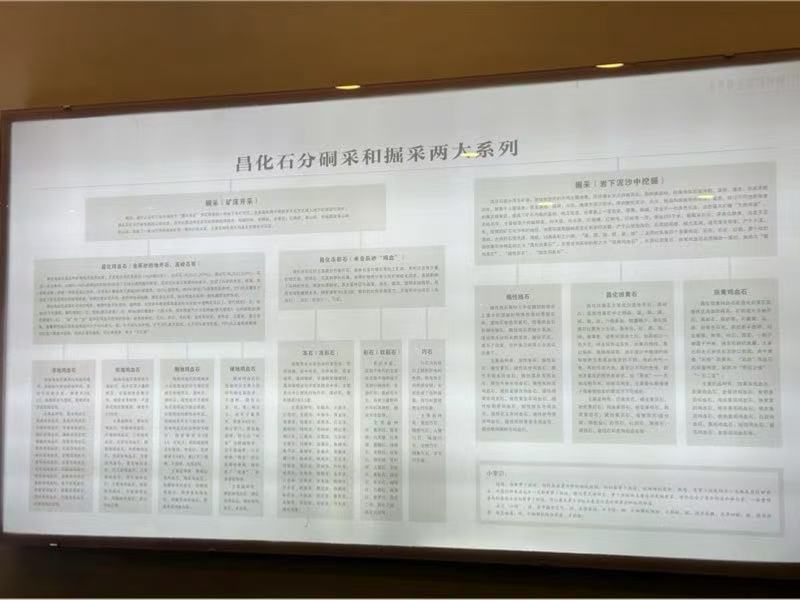 上午九时,实践团成员在钱友杰的带领下开启博物馆之旅。步入展厅,春秋战国时期的剑鞘残件吸引众人目光,其表面的饕餮纹与云纹以浅刻技法呈现,印证了他口中 "古人已懂借石传艺" 的历史。"2008 年鸡血石雕列入国家级非遗名录,核心技艺就是依血色布局雕刻。" 而昌化石的开采史更是一部技术演进史,分铜采和掘采两大系列:“春秋战国用青铜工具铜采,沿矿脉浅层开采,留下了这些剑鞘残件;后来发展为掘采,明清时技术已能精准定位矿脉,既提效又减少石材破坏。” 钱友杰大师轻抚展柜,为实践团成员详解两大开采系列的演变脉络。