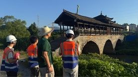 2025年7月4日早上5:30,湖南科技大学土木工程学院研究生暑期科技服务团桥梁组,赴冷水江市金竹山镇毛易村,对省级文物保护单位——柳溪风雨桥展开专项调研工作,将专业知识融入文化遗产保护第一线。