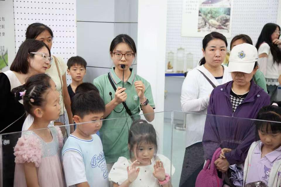 在一层展厅,志愿者讲解员以中华鲟和桃花水母标本为切入点,巧妙地对比了无脊椎动物与扬子鳄的生理结构差异。他们用“从海洋到陆地”的故事,生动串联起生物进化的壮丽轨迹,让观众仿佛穿越时空,见证生命的历程演变。