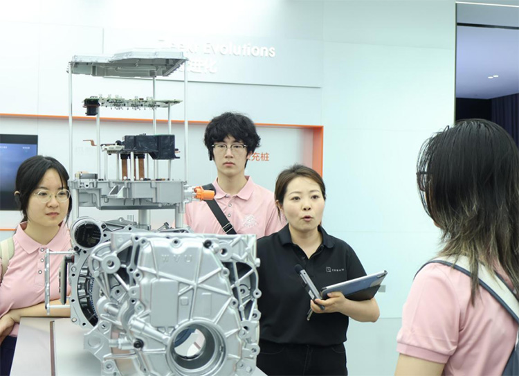 在宁波,团队首站抵达拓普集团。作为全球汽车零部件行业的领军企业,拓普集团自1983年成立以来,凭借内延式发展,已在全球布局70多家工厂,业务涵盖底盘、内外饰等四大领域。同学们通过负责人的介绍以及对展厅、实验室的参观,深切体会到拓普集团在技术研发上的大力投入以及对产品质量的严格把控,对汽车零部件行业有了更为直观的认识。