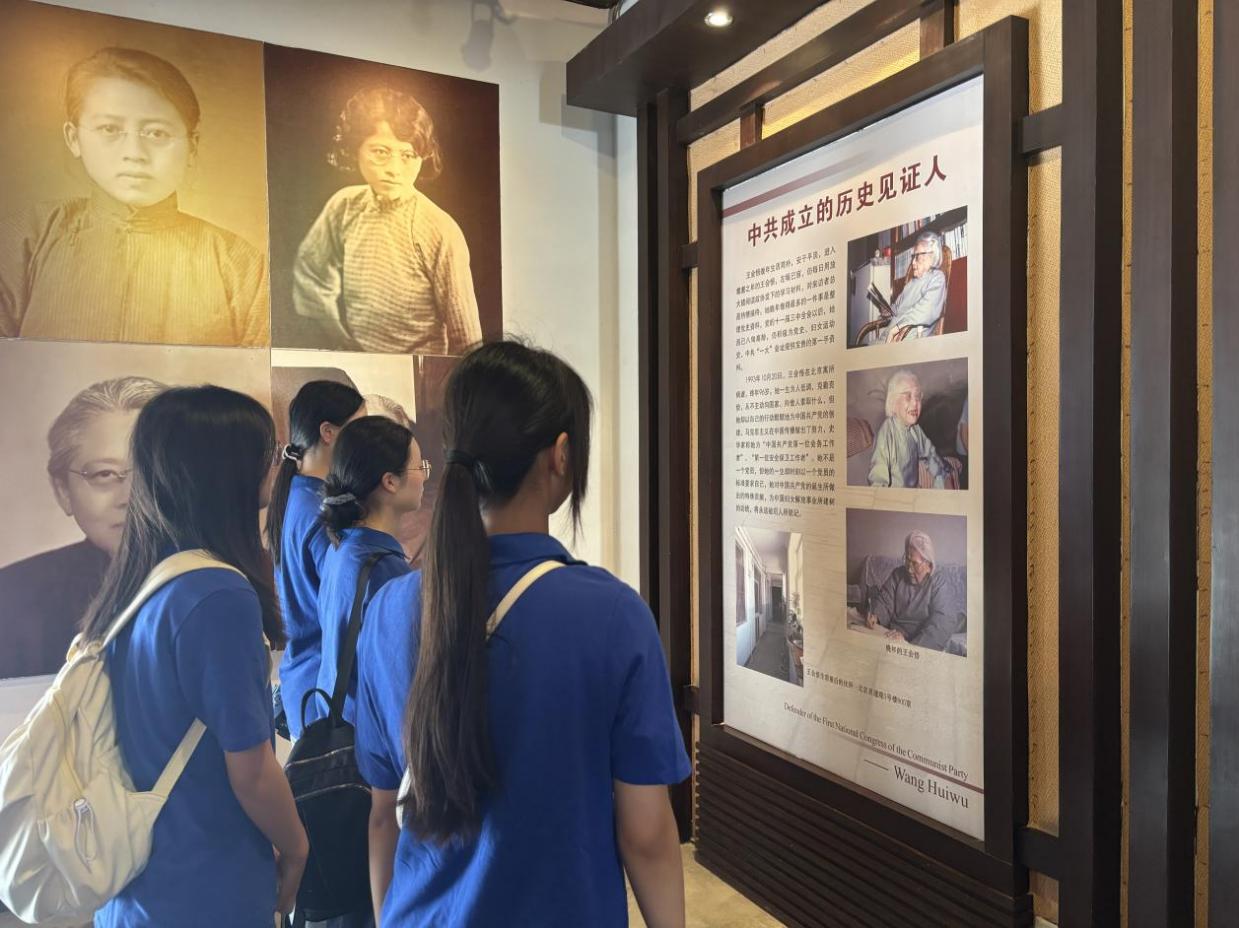 实践的最后一天,团队来到王会悟纪念馆。馆内大量珍贵的历史实物、照片及文字说明,全方位展现了这位中共一大“卫士”波澜壮阔的一生。大家详细了解到王会悟在中共一大召开过程中,负责后勤保障,在会议遭遇干扰时果断建议转移至嘉兴南湖,并在游船上望风放哨,以智慧和勇气确保会议顺利进行,为党的诞生立下不朽功勋。参观过程中,王会悟生前使用过的旗袍、手提箱、笔记本等老物件,生动展现了她为共产主义事业无私奉献的一生,深深打动了在场的每一个人。