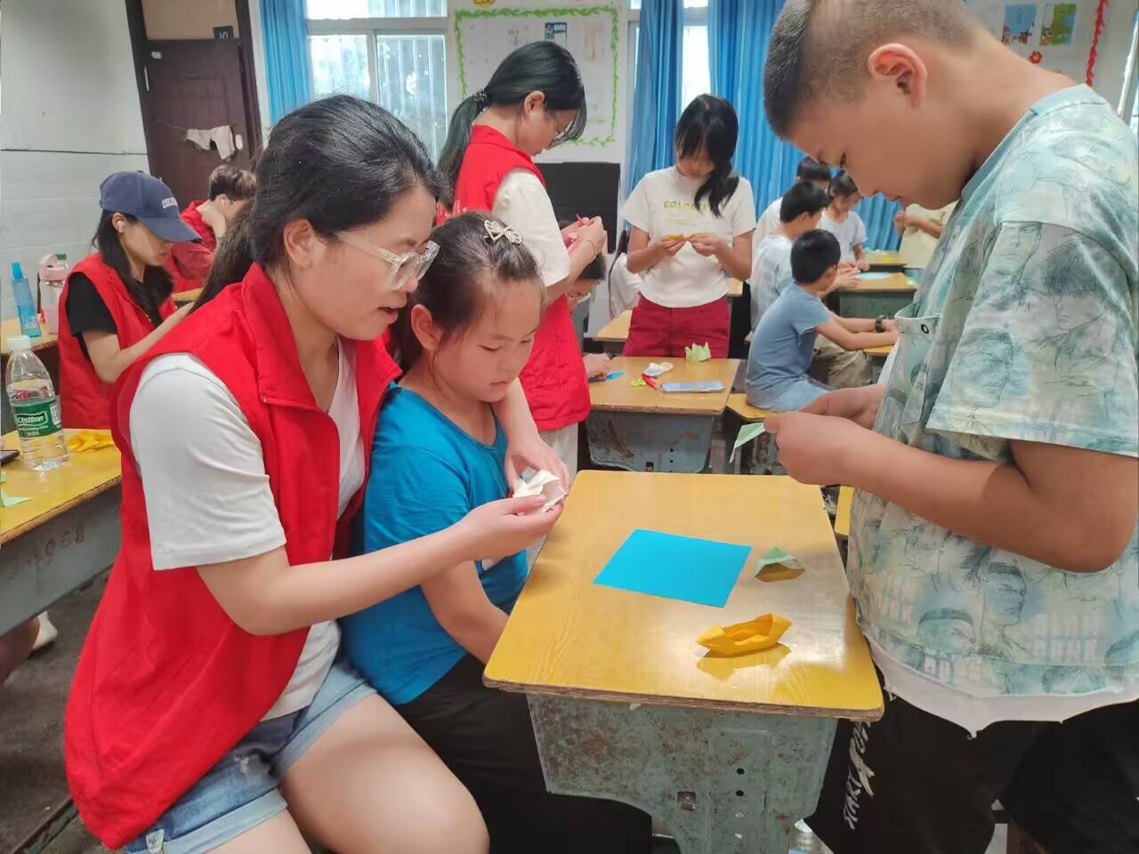 除趣味课程,队员们还为孩子辅导暑假作业,耐心解答难题,针对薄弱学科查漏补缺。同时,开展 “梦想分享会”,鼓励孩子们讲述理想,队员们结合自身经历给予鼓励与引导,助力他们明确努力方向。