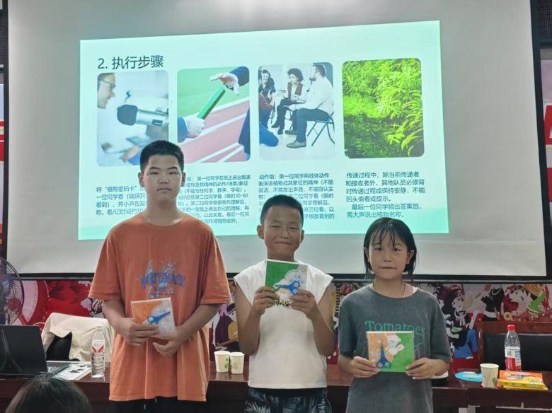 活动伊始,“植物密码传递赛”率先展开。实践队员邹永超向孩子们详细讲解游戏规则后,大家分组参与其中。孩子们充分发挥想象力,用肢体语言和绘画将植物照片的特征生动呈现,并依次传递给下一位成员。最终,多名小组的最后一名孩子都能精准说出植物名称,现场氛围活跃。团队根据各小组传递速度进行排名并给予鼓励,孩子们对这种新颖形式兴趣浓厚,意犹未尽。为满足大家的参与热情,对积极参与的孩子发放奖品,进一步激发了孩子们的积极性