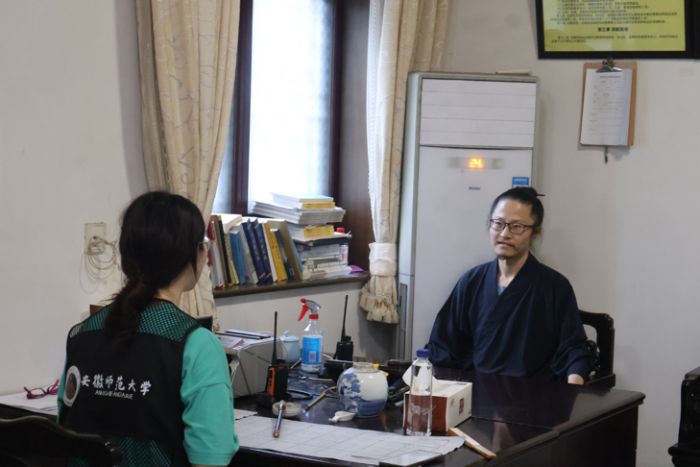 图为安师学子代表请教太清宫温道长崂山道乐赵青云供图