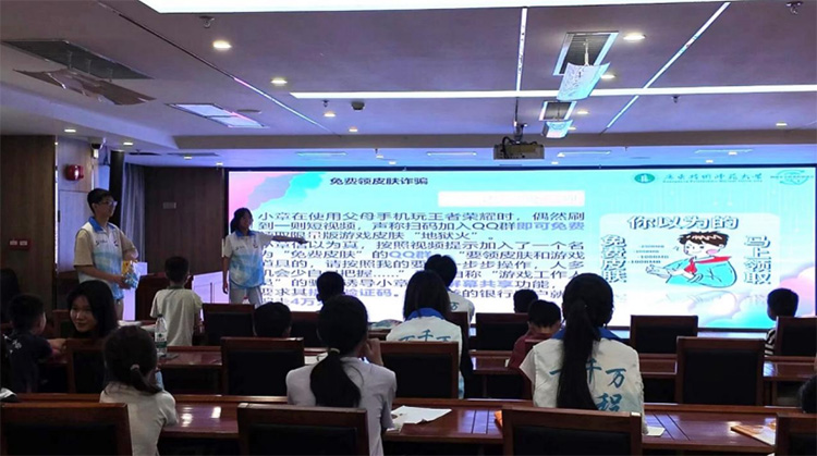 同时,为响应团中央“伙伴计划”示范项目——正能量课堂关爱青少年健康成长,爱心辅导作业志愿服务活动,队员们来到东源县工人文化宫开展了为期7天的特色支教课程。正值暑期,队员们不仅开设了暑期食品安全科普和防溺水安全科普课程,还结合自身网络空间安全专业特色开展了人工智能科普和防诈宣讲。