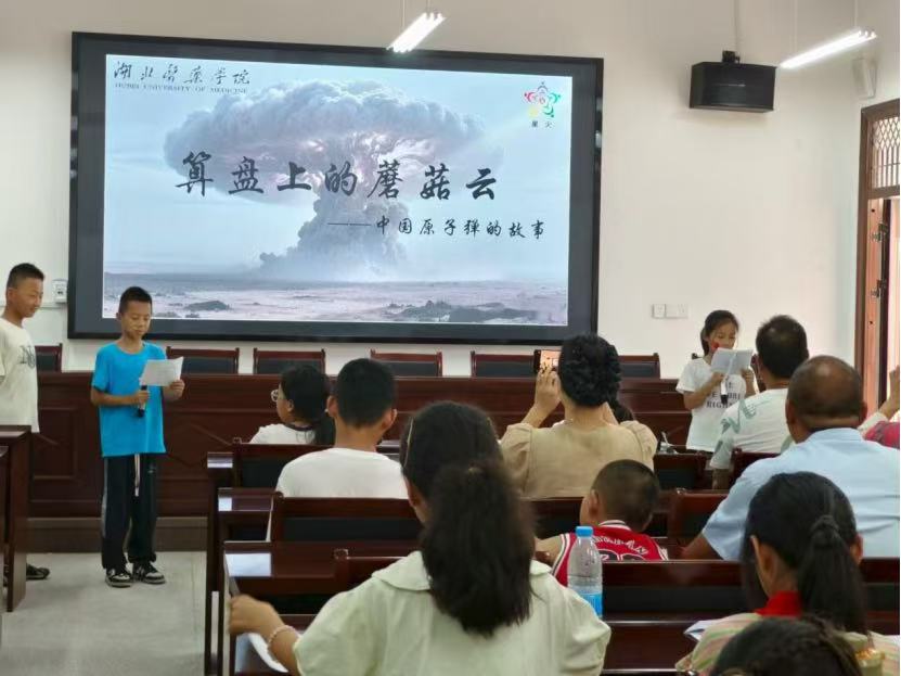 在活动中,湖北医药学院的学子们向丁家营小学的学生们详细介绍了钱学森、孙家栋、邓稼先、郭永怀、叶企孙、赵九章、王淦昌等为“两弹一星”事业做出卓越贡献的科学家们的事迹。他们用生动的语言,讲述科学家们为了祖国的强大,不畏艰难、无私奉献的感人故事,让学生们深刻感受到了“两弹一星”精神的内涵。